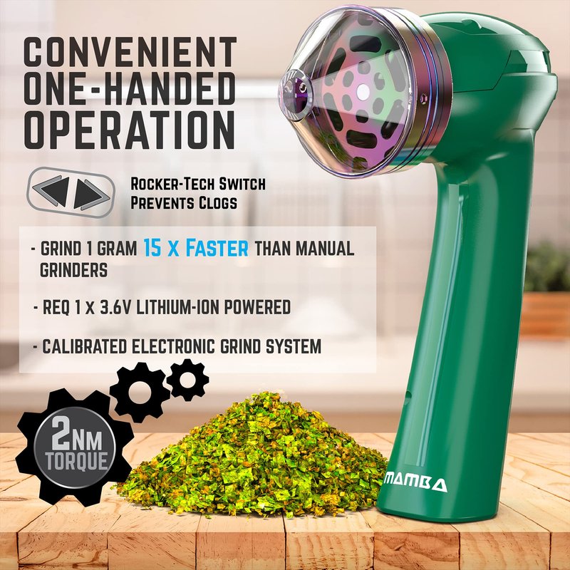 Mamba Original V2 1g Green Electric Portable Herb Grinder. USB Powered Essential Kitchen Mill for Grinding