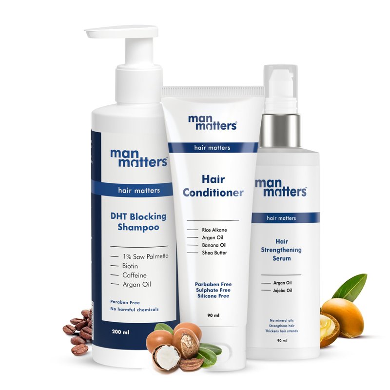 Man Matters Hair Care Kit For Man | Anti Hair Fall Shampoo 200Ml | Hair Strengthening Serum 90Ml | Hair Nourishing Conditioner 90Ml