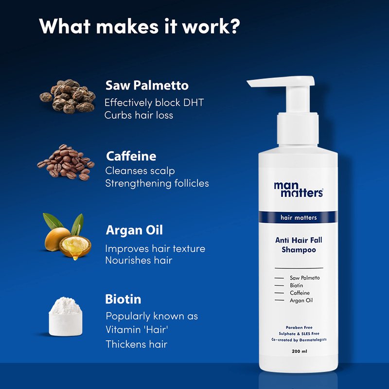 - ANTI HAIR FALL SHAMPOO: Man Matters DHT Blocking Shampoo is a dermatologist recommended shampoo for hair loss that strengthens hair. It is a paraben free and sulphate free shampoo for men so that you get a chemical free daily regime to stop hair fall.