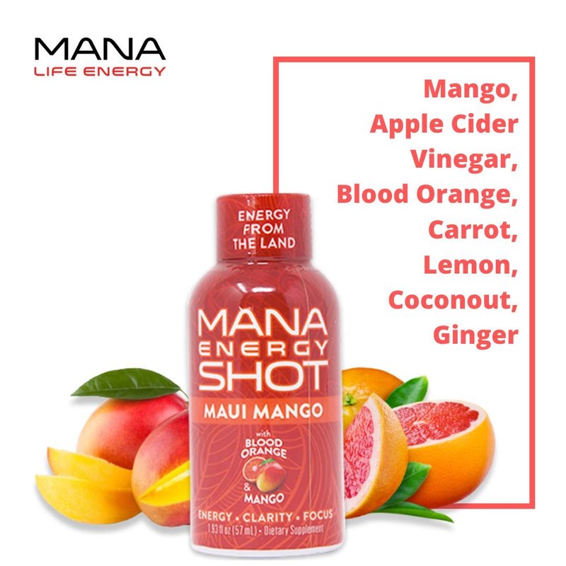 Mana Life Maui Mango Shot- All Natural Plant Based w/Vitamin C, B12, Zinc for Energy, Focus, Clarity, Immunity Support, Antioxidant, Fatigue, Brain Fog,Performance (12PACK)