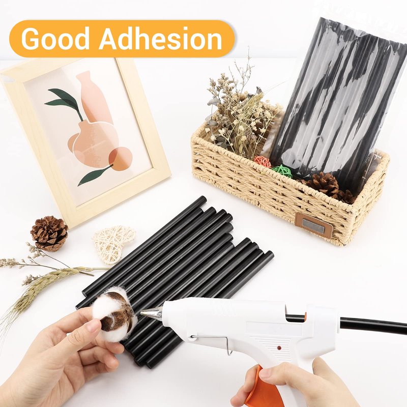 - Package --- 24 pieces of black hot melt glue sticks full size, a great amount for home, office and school projects. Kids use the glue sticks with adult supervision.