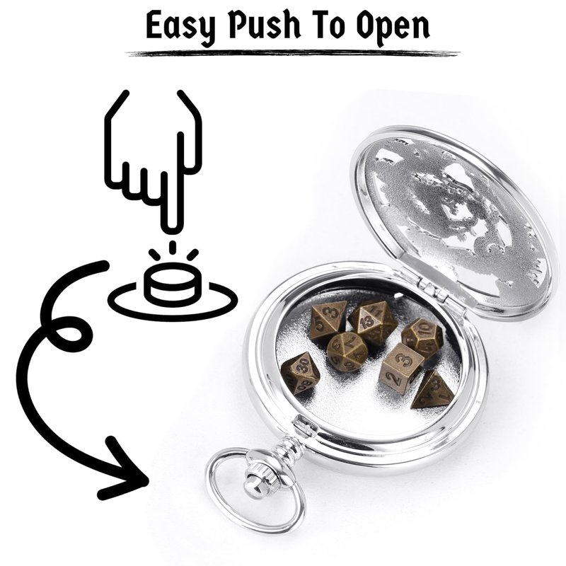 - 【Tiny Metal Dice Set】: The dice are made with solid zinc alloy for use of years. Necklace and Chain are made with 304 stainless steel. Dimension - 0.33~0.39'' D4~D20 zinc alloy dice, 1.85'' diameter dice case, 14'' stainless steel chain, 27'' stainless steel necklace.