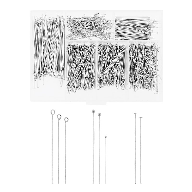 Do brass eye pins turn your neck green? Do you think sterling eye pins are too soft and easy to tarnish? These heavy-duty pin heads for jewelry making are the answer. Made from solid stainless steel, these long-lasting jewelry making head pins do not require constant polishing or lose the silver tone over time like many other lightweight jewelry findings pins. The head eye pins have the perfect combination of flexibility and sturdiness that is easy to bend with jewelry pliers and maintain the shape. The long eye pins are very easy to cut down to fit your bead size and easy to match to other jewelry materials such wire, cord, or string. These versatile silver eye pins make a great addition to your jewelry making and crafting stash. Compatible with various jewelry findings, this eye pin kit with ball eye pins, head pins, and open eye pins have almost all the connectors you need to create clay earrings, feather earrings, drop charms, and beaded chains. Making a loose bead into a pendant or charm is as easy as threading the eye needle pin through the bead hole, cutting down the pin, and making a loop to attach to other jewelry finding or cord. For beading hobbyists, these bead head pins help string up teeny beads. The metal eye pins can also be used as connectors for beaded chains. The eye head pins are also a great hypoallergenic eye pins for DIY crafting. From creating zipper pulls to Christmas ornaments, these DIY eye pins can do it all. The uses of the eye pin findings are so versatile that they can even be used as reset pin tool for cell phones.