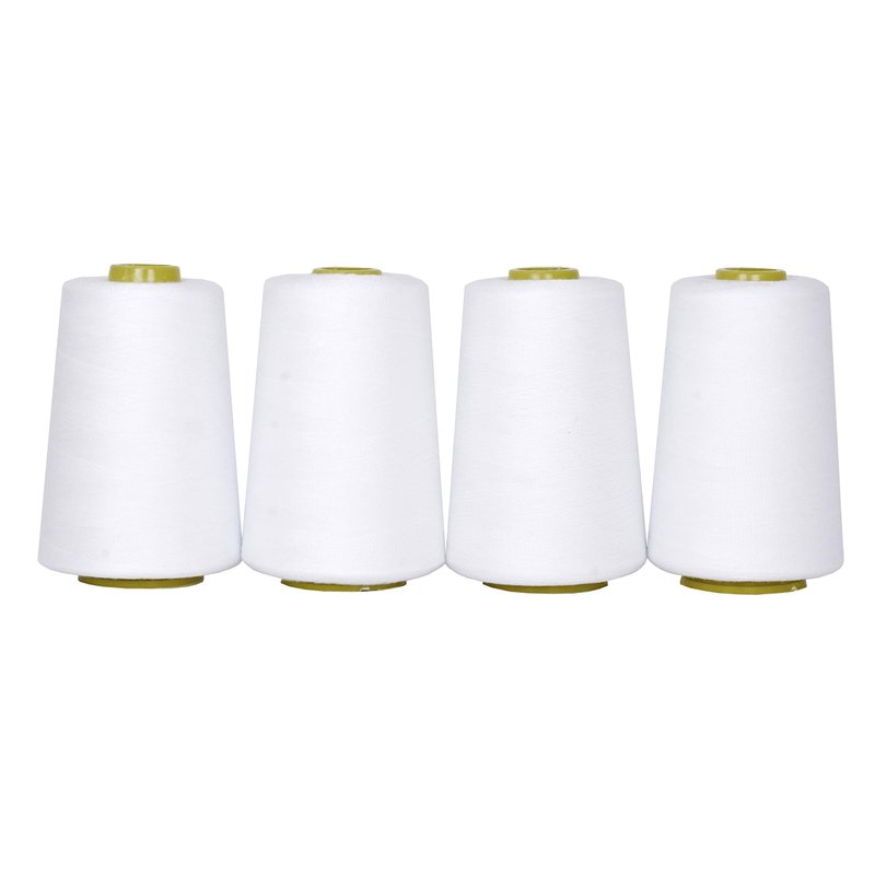 - White color sewing thread for decorative embroidery stitches; Cone sewing thread can withstand high stitching speeds; White spun polyester sewing thread for garment; White spun polyester thread for fabric, leather, and vinyl; Strong serger machine thread