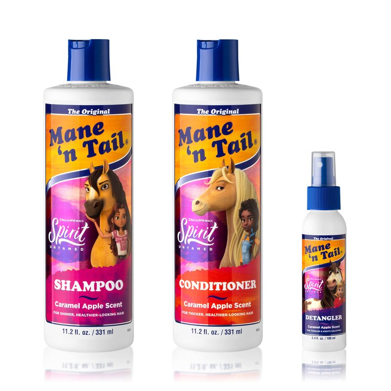 Mane 'n Tail's Spirit Untamed Caramel Apple Scented Shampoo, Conditioner and Detangler System is the only set you'll need for bath time. Made in the USA by a family-owned company, Straight Arrow Products, Inc. your family can rest assured that this product is made with the finest ingredients. Discover the Spirit of Great Hair with this great super soft conditioning products that creates silky, shiny hair with a healthy look and feel.