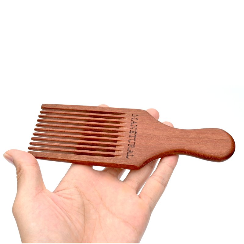 Introducing the MANETURAL Handmade Beard Pick, a meticulously crafted grooming marvel that seamlessly blends style with functionality. This 7-inch wooden comb is a testament to artisan excellence, meticulously carved by hand to ensure precision and quality. Specifically designed for beard care, its unique "Beard Pick" configuration guarantees an exceptional grooming experience, effortlessly managing facial hair with a smooth, snag-free glide. The comb's thoughtful design extends its utility to women with curly hair, where the strategically spaced teeth prove adept at styling afro, wavy, kinky, and curly locks. The anti-static properties of the comb not only reduce frizz but also contribute to overall hair health, making it a versatile and indispensable tool for both men and women. Elevate your grooming routine with the MANETURAL Handmade Beard Pick – where craftsmanship meets versatility for unparalleled styling precision.