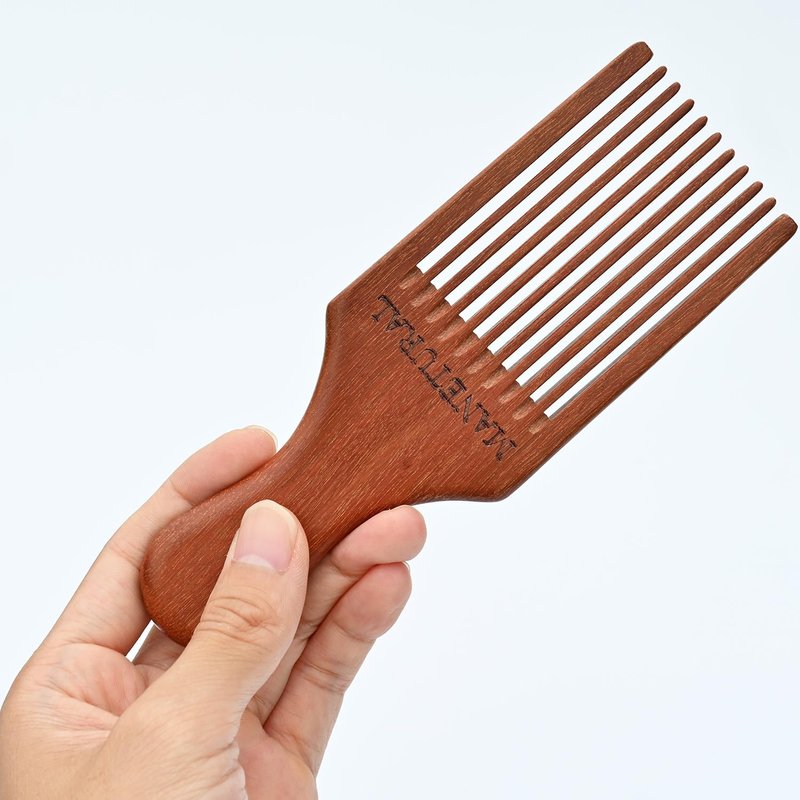 MANETURAL Beard Pick for Men 7" Handmade Afro Hair Comb - Wooden Grooming Tool for Men, Women with Wavy, Kinky, Curly Hair - Anti-Static Styling Precision"