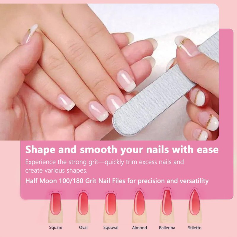 - 🎨【Versatile Application】: This nail manicure kit is perfect for natural, acrylic, and gel nails. The double-sided nail files are suitable for shaping and smoothing nails, while the buffer blocks polish them to a glossy shine. The cuticle remover kit helps maintain healthy and neat cuticles.