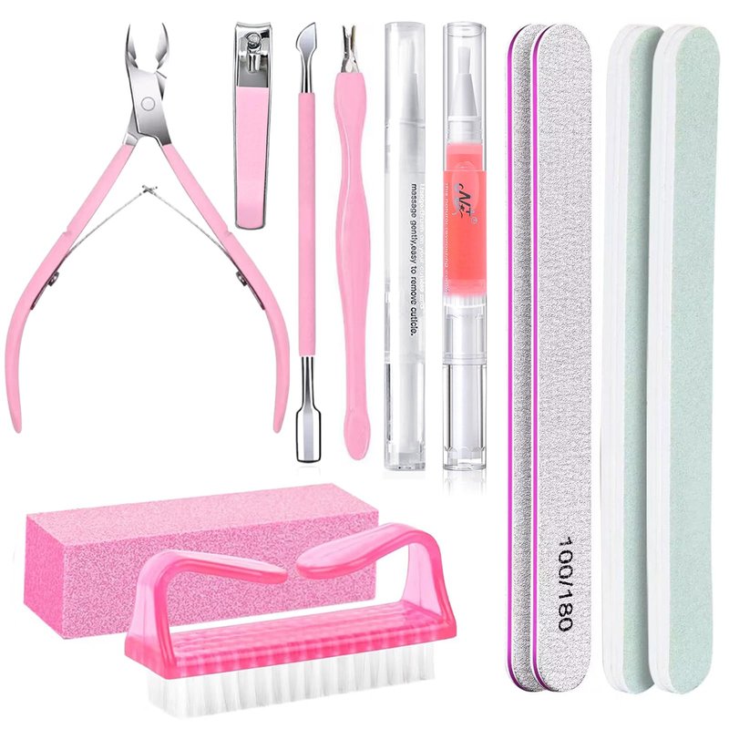 This comprehensive manicure set includes everything you need for a professional-grade manicure and pedicure at home. It comes with a cuticle trimmer, nail clipper, cuticle pusher, cuticle softener pen, nail files, buffer blocks, and a cleaning brush. Perfect for both beginners and seasoned pros.