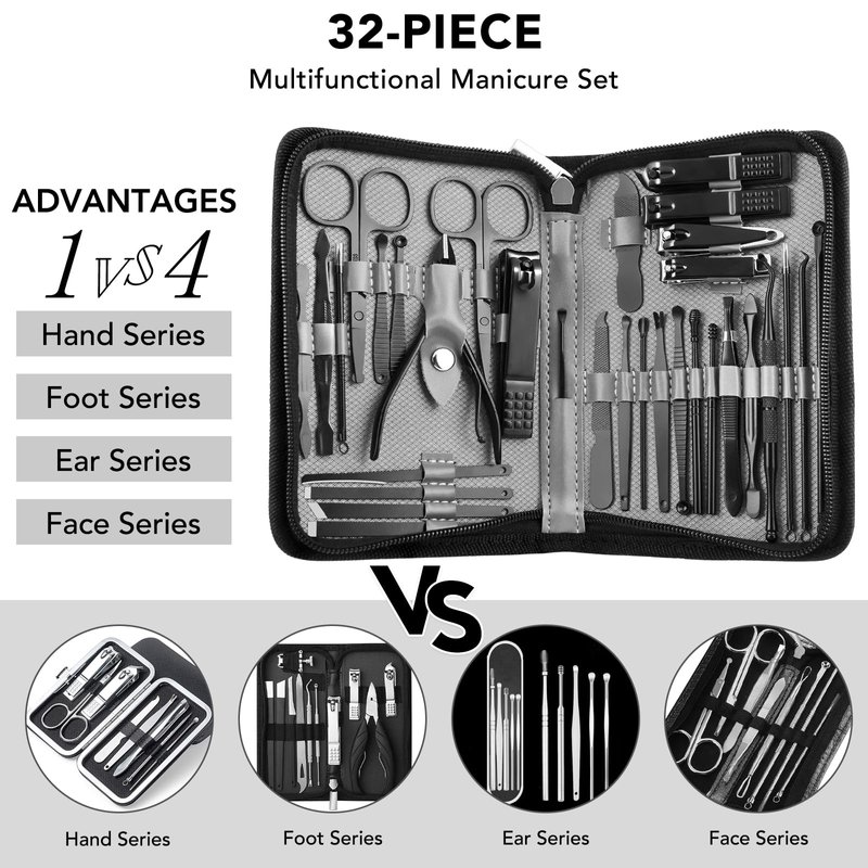 Manicure Set 32pcs Professional Nail Clippers Kit Pedicure Care Tools-Stainless Steel Grooming Tools for Travel