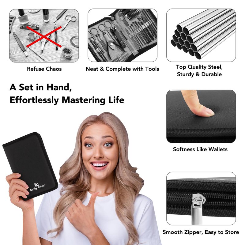 Keiby Citom Manicure Set 32 Pcs - High Quality Stainless Steel, Durable, Sharp, Hard and Durable