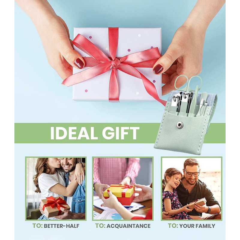 - Portable Grooming Kit: with a green leather bag, very lightweight so you can take it wherever you go for quick touch-ups or full nail care sessions.