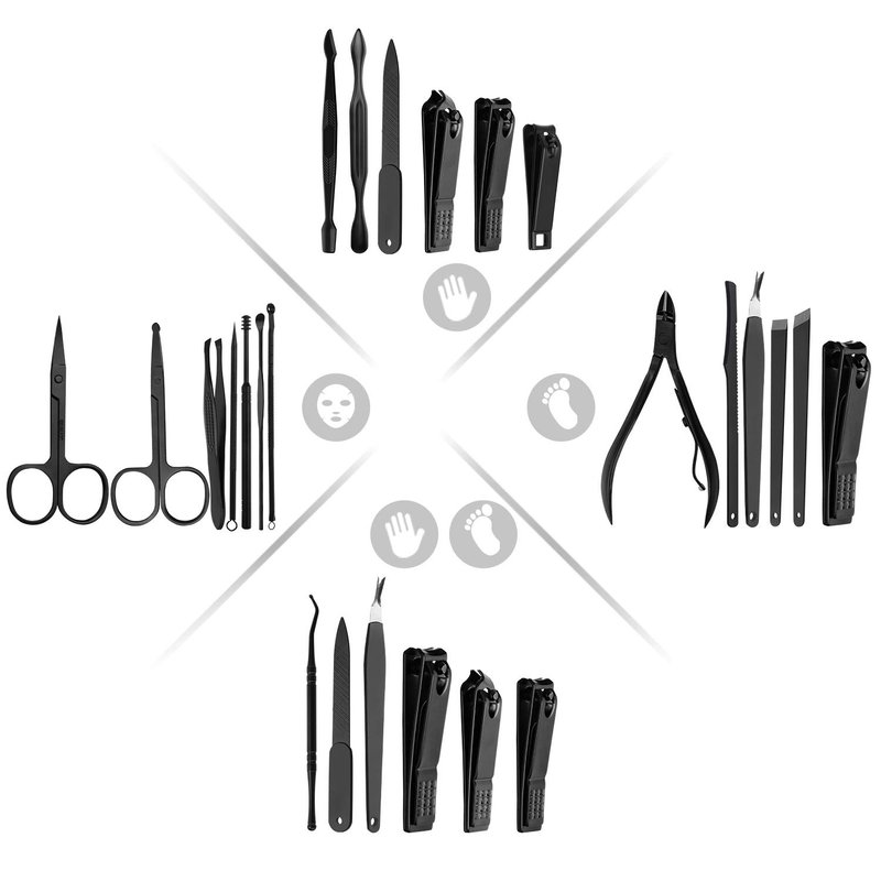 - Manicure Set (20 Pieces): ESARORA Professional Manicure Kit Contains 20 pieces nail and toenail tools for three functions, including hand care,facial care, and foot care. This Manicure Pedicure set has every thing you need.