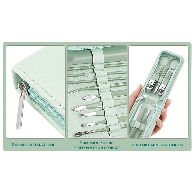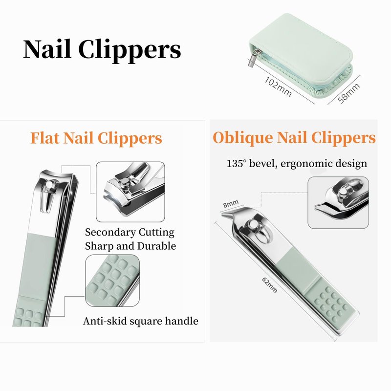 - 【 Personalized design 】: The nail clipper cover is equipped with a luxurious and fashionable leather cover made of advanced PU material, which can be opened by simply opening the zipper; The watch case feels very soft and has a slight padding inside, which can firmly secure the beautiful mint green nail care set components inside