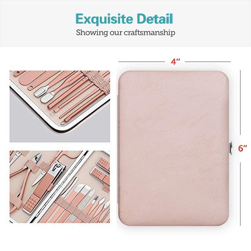 Manicure Set Pedicure Kit Nail Clippers Set Fingernails & Toenails Vibrissac Scissor 18 Pieces Best Care Grooming Tools for Man & Women Gift with Case (Pink_18in1)