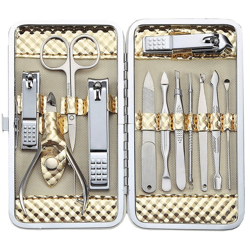 Manicure Set Professional Nail Clippers Kit Pedicure Care Tools- Stainless Steel Women Grooming Kit 12Pcs for Travel or Home (Gold)