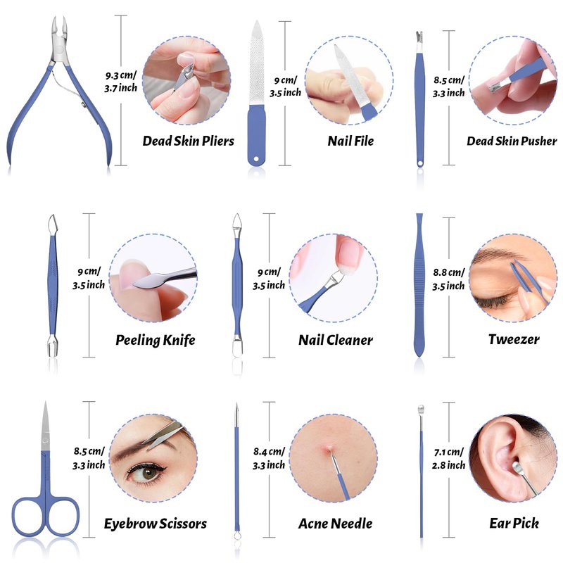- 🦋🦋Professional Nail Care Kit: Made of high-quality stainless steel, nail clippers are sharp and durable. Large, small, diagonal clippers can cut every corner of nails and trim thick/hard nails easily. The nail grooming kit is coated with an anti-rust blue coating, which is pretty and practical, and also not easy to rust.