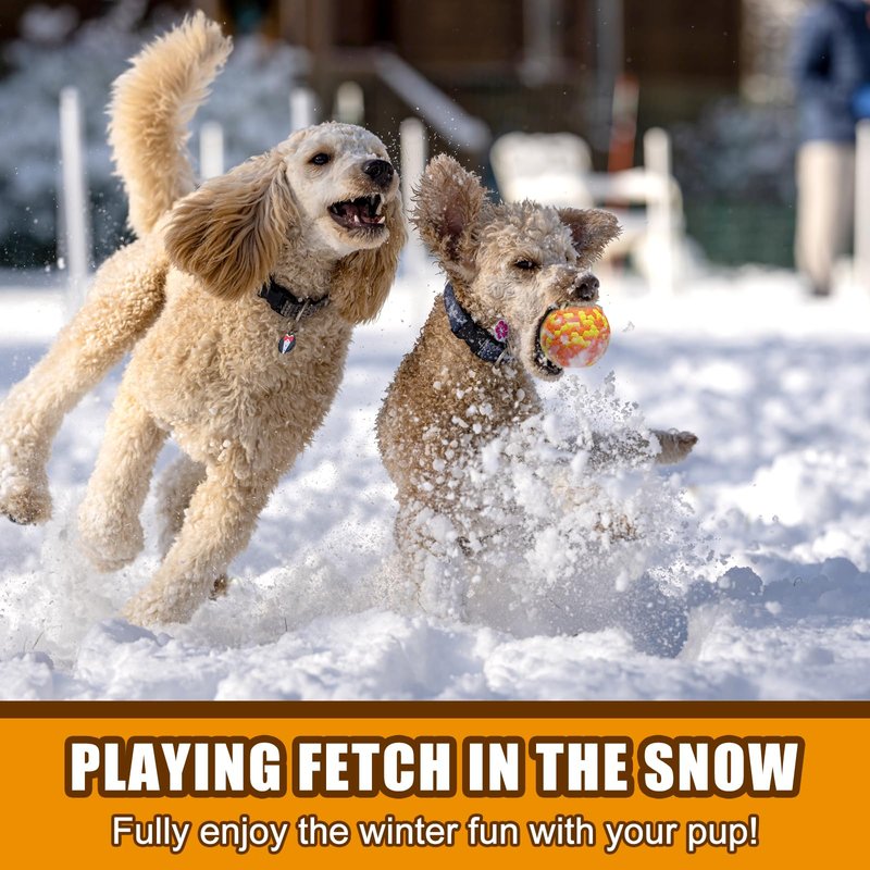 - đ„ăInteractive Dog Toys for Fetch GameăGreat to throw or use with ball launchers, these balls are perfect for fetching. Whether you're in the yard or in swimming pool, even at the beach or in the snow. Our balls enrich the human-animal bond. They can float on the water, are lightweight and bright colorful that will be easy to toss and find.