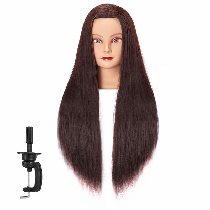 Mannequin Head 26"-28" Synthetic Fiber Training Head Braiding Head Hair Styling Manikin Cosmetology Doll Head Hairdresser Training Model for Cutting Braiding Practice with Clamp (92018LB0420)