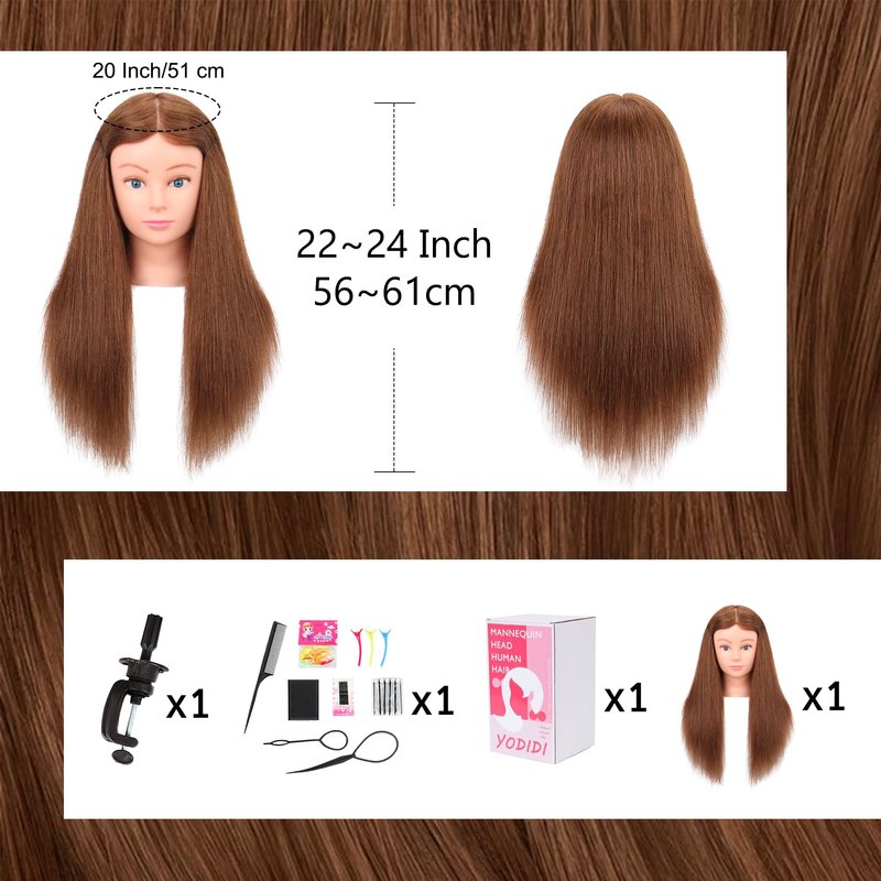 - 【Appealing Design】Crafted with 100% real human hair, our 22-24 inches mannequin head offers a lifelike texture and appearance, perfect for practicing various hair styling techniques,which is No Smell, No Harm to Your Healthy and Your Environment.