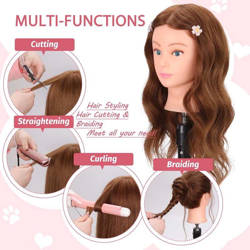 - 【Fantastic Present】This Human Hair Mannequin Head is the perfect selection for aspiring hairstylists to hone their skills, young girls to engage in imaginative play, or as educational materials for kindergarten or primary school classrooms.