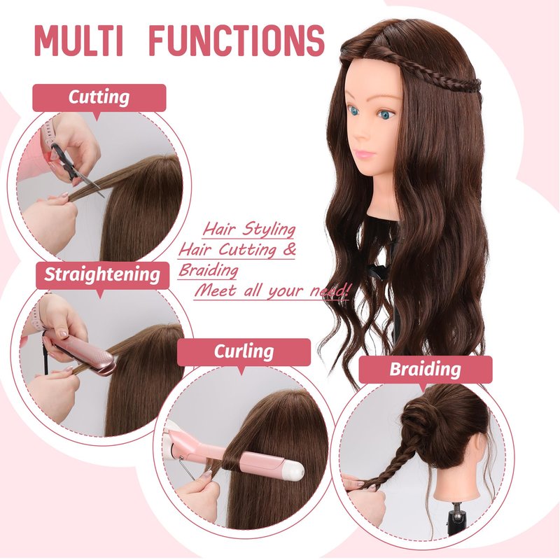 - 【Fantastic Present】This Human Hair Mannequin Head is the perfect selection for aspiring hairstylists to hone their skills, young girls to engage in imaginative play, or as educational materials for kindergarten or primary school classrooms.