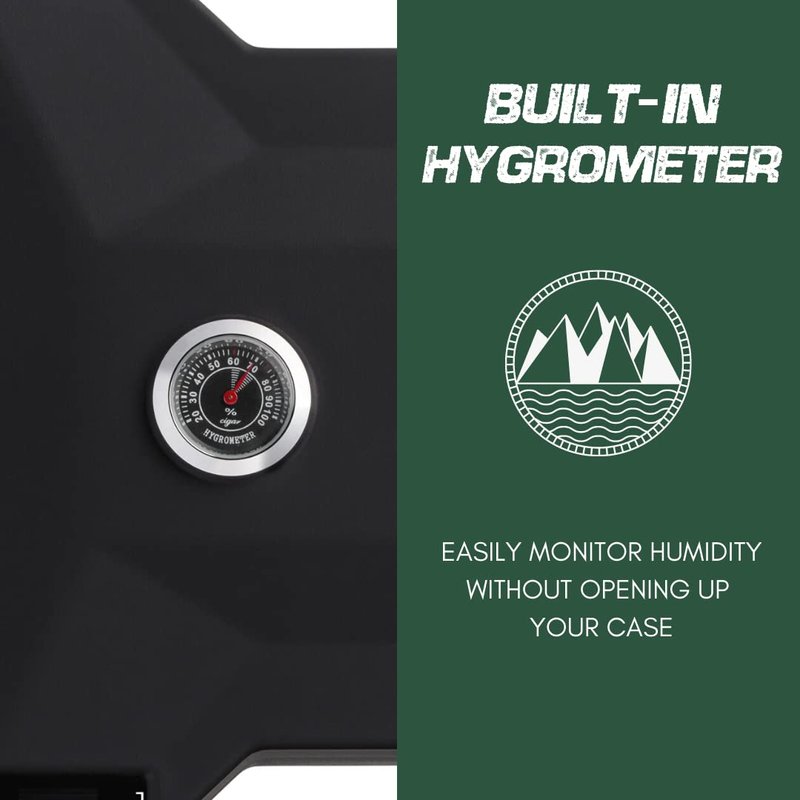 - BUILT-IN HYGROMETER- This travel humidor comes equipped with a built-in hygrometer which makes it easy to monitor the humidity of your cigars without opening the humidor case and letting the precious humidity out.