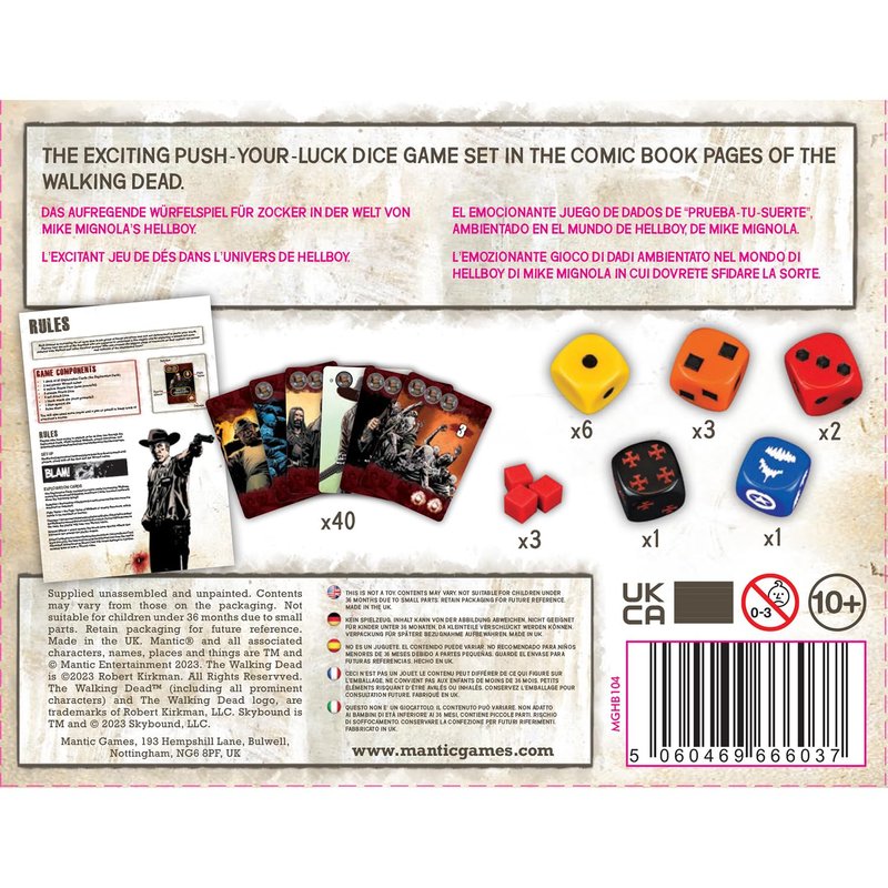 - IMMERSIVE GAMEPLAY: The exciting push your luck dice game set in the comic book pages of The Walking Dead.