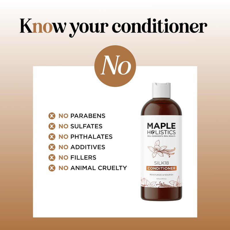 Maple Holistics Hair Conditioner for Damaged Dry Hair - Silk Protein Conditioner with 18 Natural Oils for Frizz Control & Shine - Hydrating Conditioner for Curly Hair (16 Fl Oz)