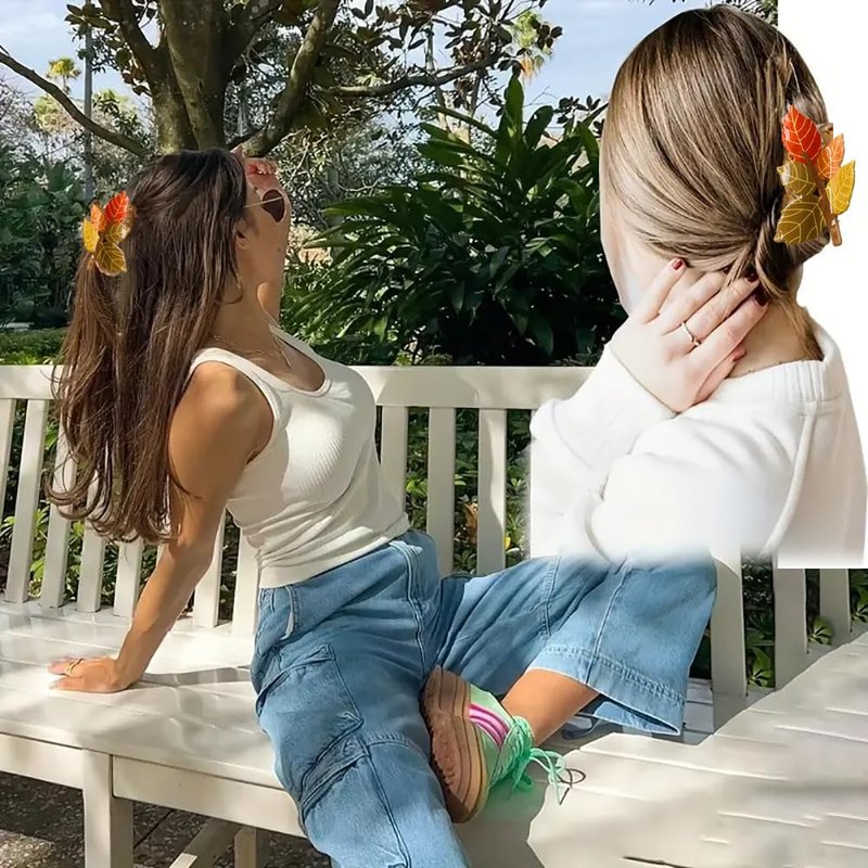 - 🍁【Package & Size】You will get 1 piece fall leaf hair clip in one package. The size of it is about 9.5 x 5 cm/3.74 x 1.97 inches. The proper size is suitable for most women and teens.