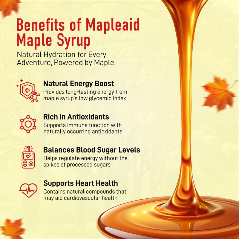 - Sustainably Sourced: Choosing Mapleaid supports sustainable farming practices. Our organic maple syrup is sourced from family-owned farms in Vermont, ensuring that every sip contributes to both your health and the health of the environment.