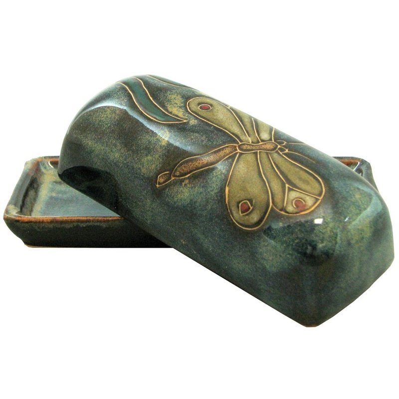 Mara Stoneware Collectible Butter Dish - Mexican Pottery - Dragonfly Design