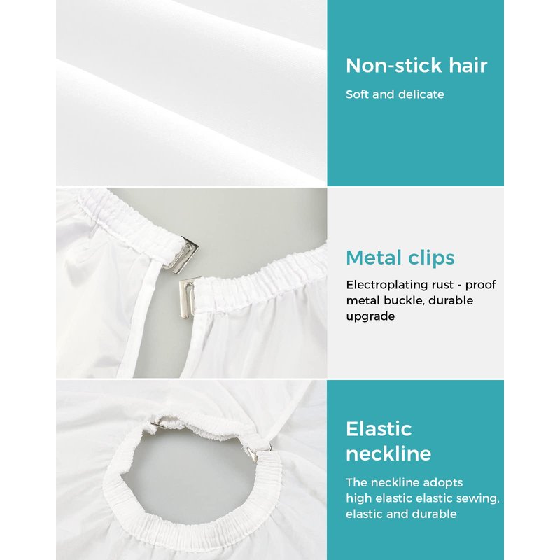 - ★【HIGH QUALITY】 - Our hair cape for haircuts is made of water-repellent material, soft, lightweight and breathable, do not stick hair. Haircutting cape for adults is easy to shake and clean, effectively keep clothes dry and clean. Fine workmanship make our salon shawl more durable to use. Hairstyling cape is suitable for hair cutting, styling, coloring, perming and other hair treatments.