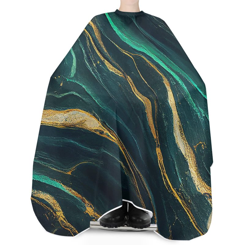 Marble Emerald Green Barber Cape - Salon Hair Cutting Cape for Women,Men,Kids,Adults,Modern Abstract Gold Art Haircut Cape with Adjustable Elastic Neckline Hairdressing Stylist Cape Gown Accessories