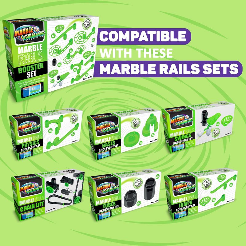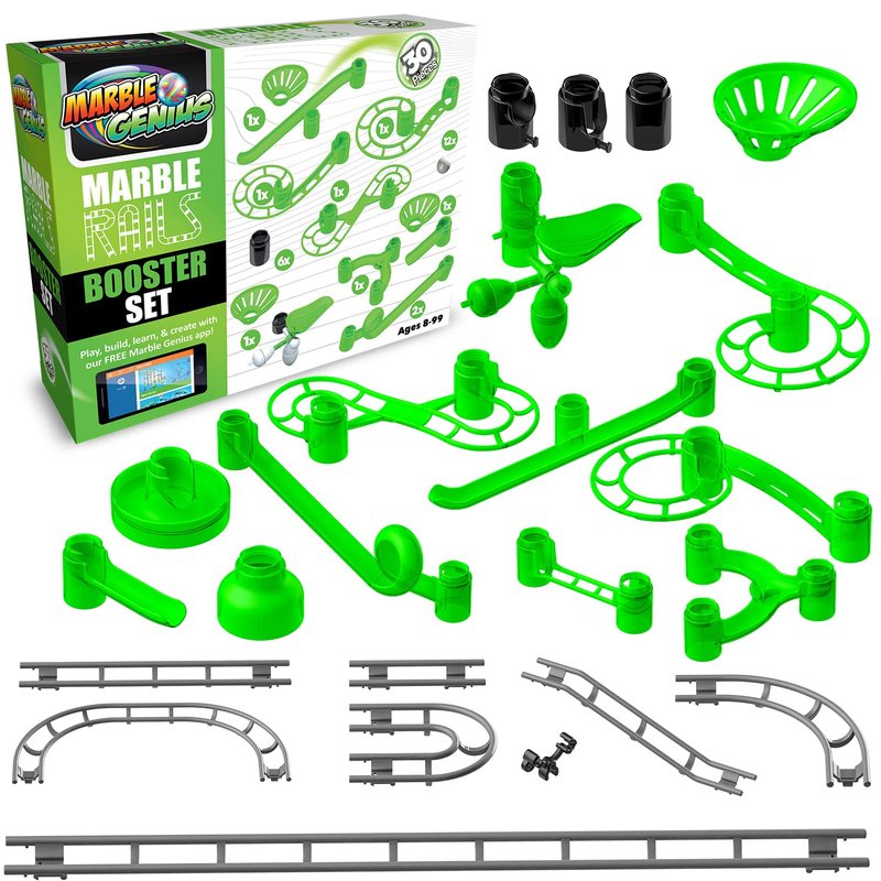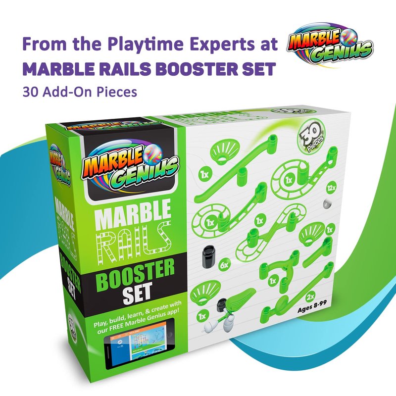 Marble Genius Marble Rails Booster Set: 30 Piece Marble Run (includes 12 Plastic Marbles), Add-Ons for Marble Rails Building Sets, with Online App and Full-Color Instructions, Ages 8 and Up