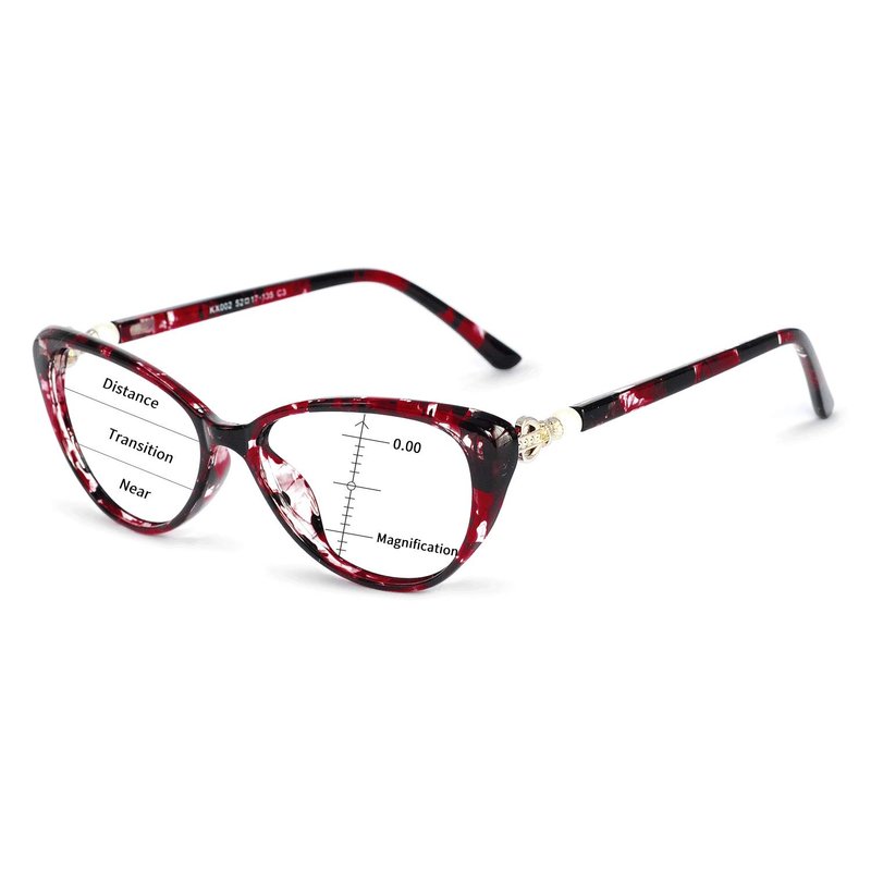 MARE AZZURO Progressive multifocal Blue Light Blocking Reading Glasses For Women Cateye (R-Red, 200)