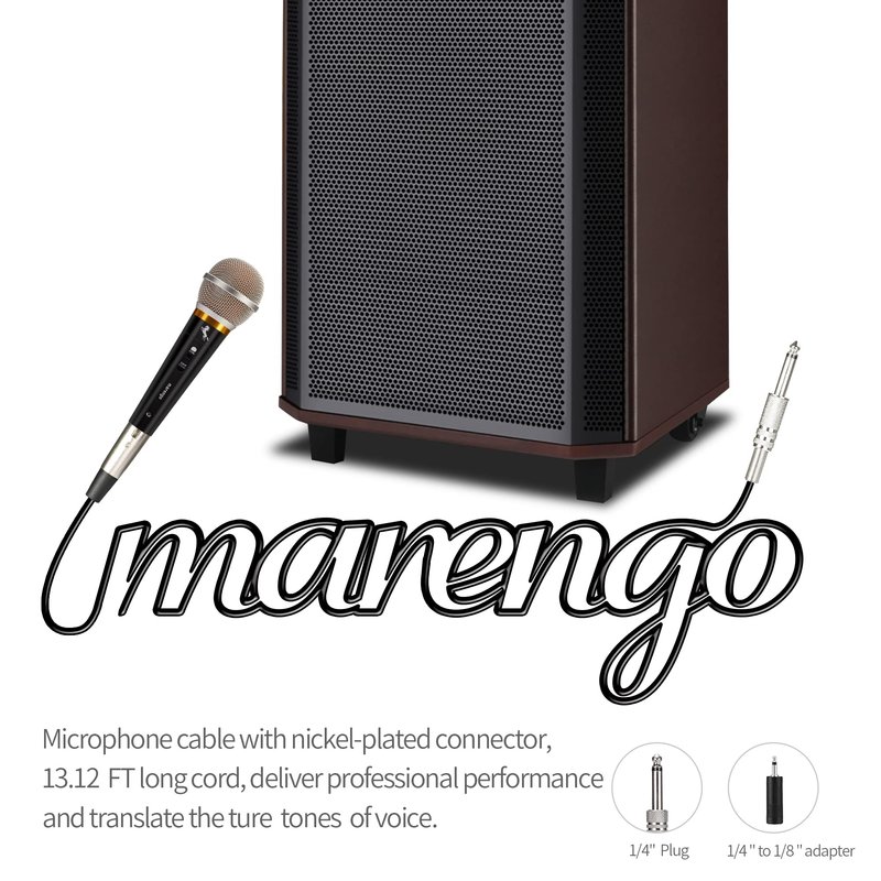 - XLR TO 1/4” Cable Included - Allowing the wired xlr microphone for karaoke to be directly plug in amplifier speaker or karaoke machine that has 1/4inch (6.35mm) mic in jack. The dynamic vocal microphone protected by two-tire PVC, and it’s thick enough for brilliant, transparent sound transmission with no loss. The corded microphone with around 13ft-long enough cable can be moved unimpeded so you can concentrate on nothing but the performance.