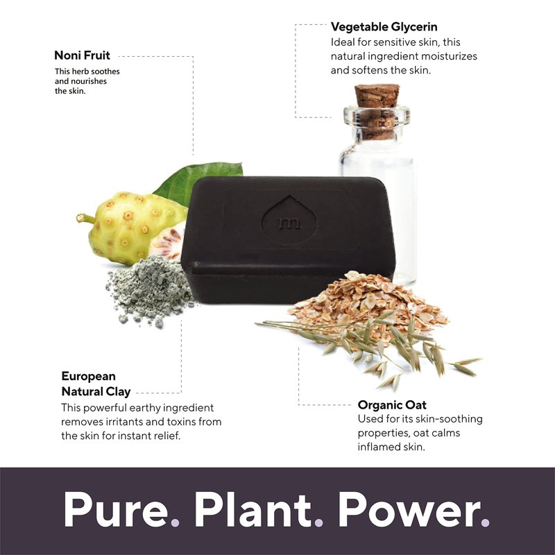 - Soothes dry, itchy skin with natural ingredients like Noni Herb, Bentonite Clay, Oat Bran and essential oils.