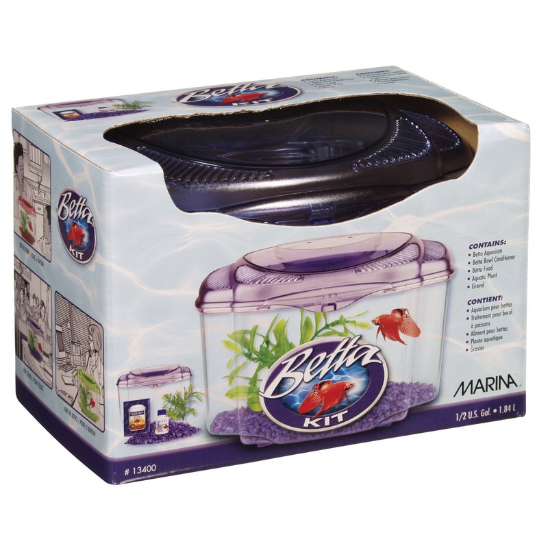 Marina Betta Pals Kit, Betta Fish Aquarium Starter Kit, Purple, 13400