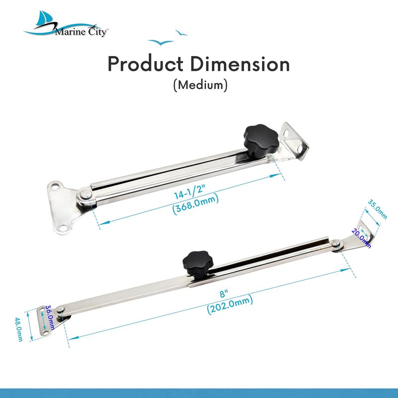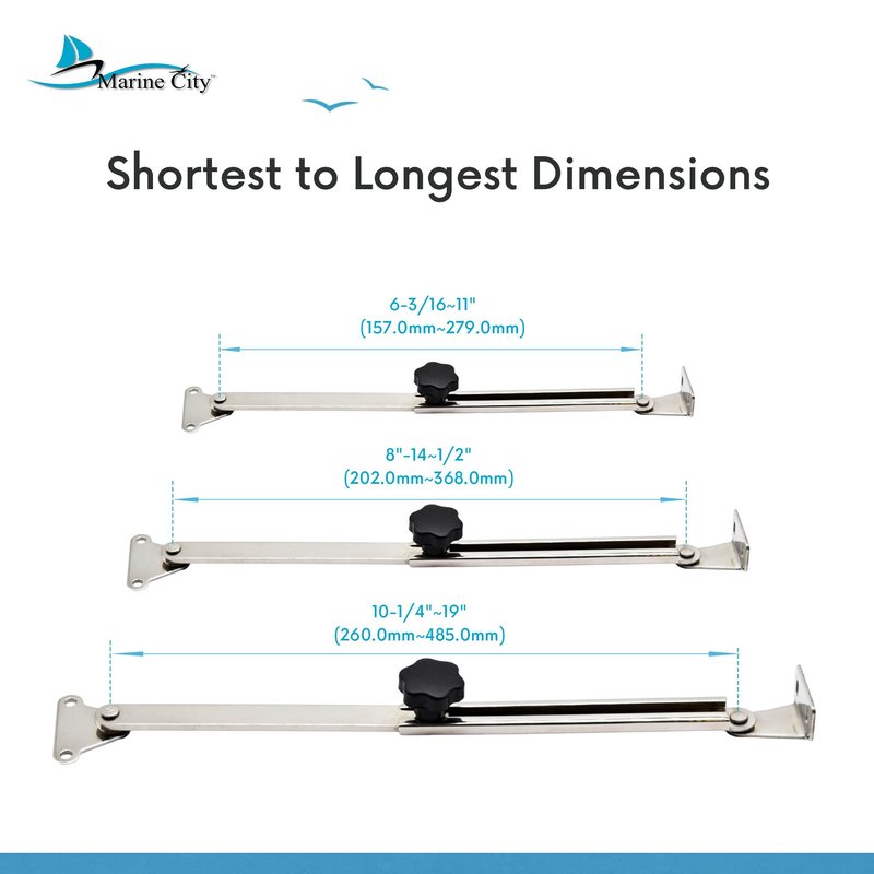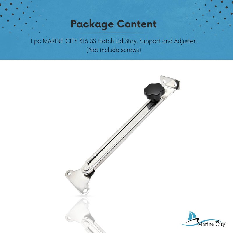 - Package Includes: Pack of 1 MARINE CITY 316 Marine Grade Stainless Steel Hatch Lid Stay Support and Adjuster (Screws are not included). Available in 3 sizes.