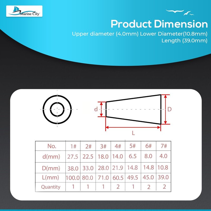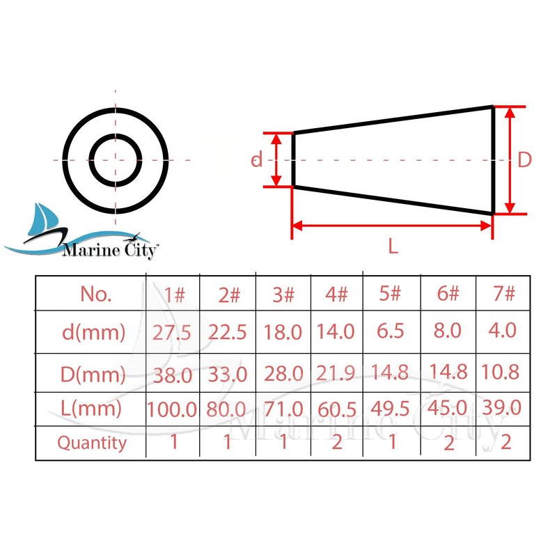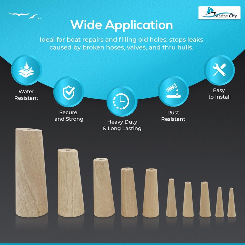 - Package Includes: 10 Marine City tapered conical wood plugs in 7 sizes.