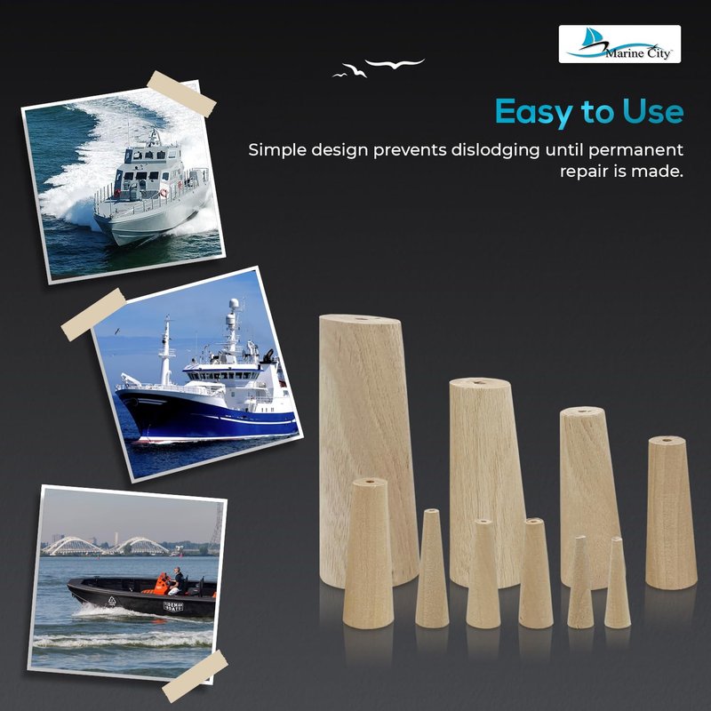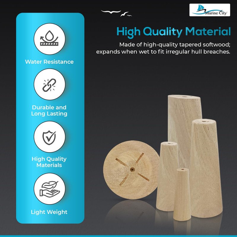 - Material: Made of high-quality tapered softwood; expands when wet to fit irregular hull breaches.
