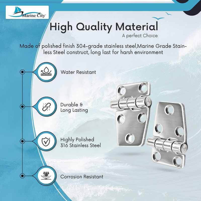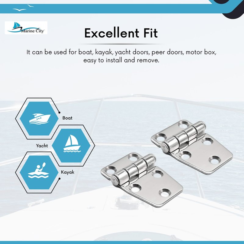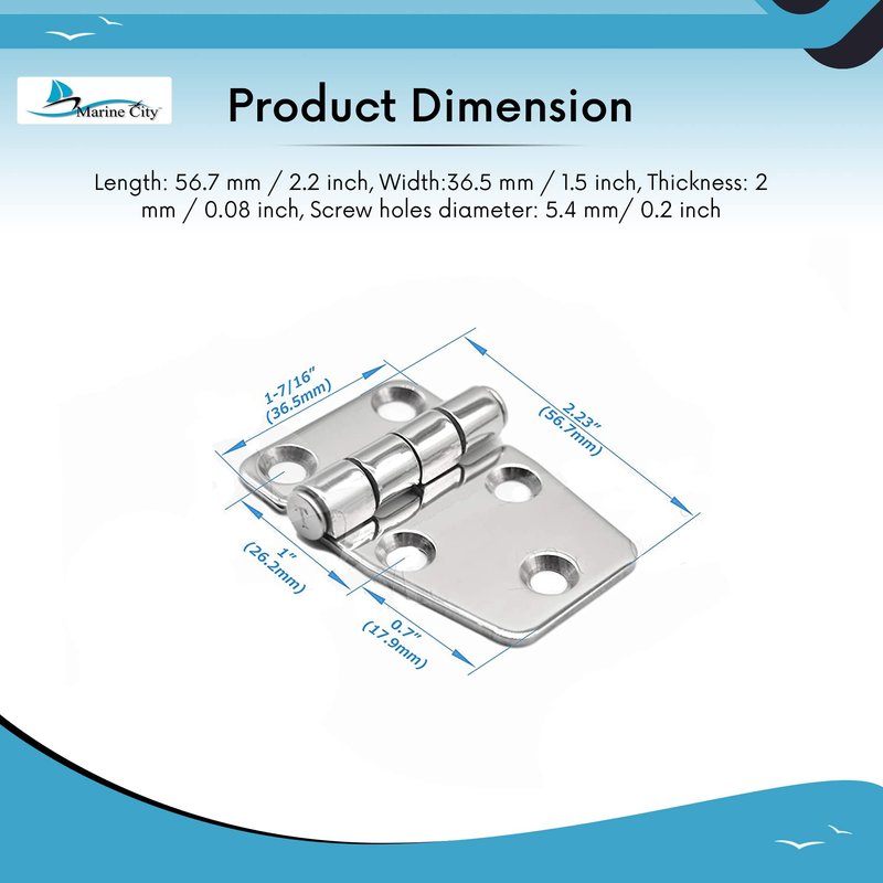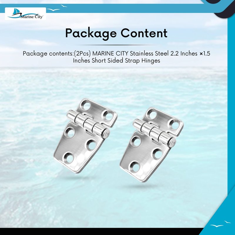 - Package Includes:2 pcs Marine City Stainless Steel 2.2 Inches x 1.5 Inches Short Sided strap Hinges.(Screws are not included)