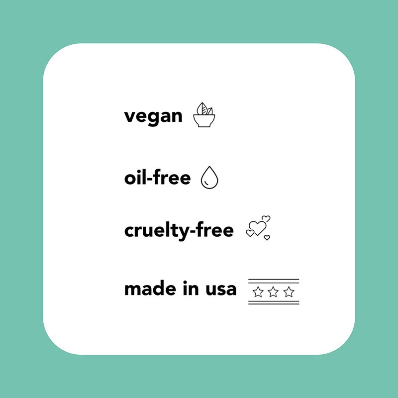 - [FREE FROM] oil, as well as, vegan, cruelty-free and made in the USA