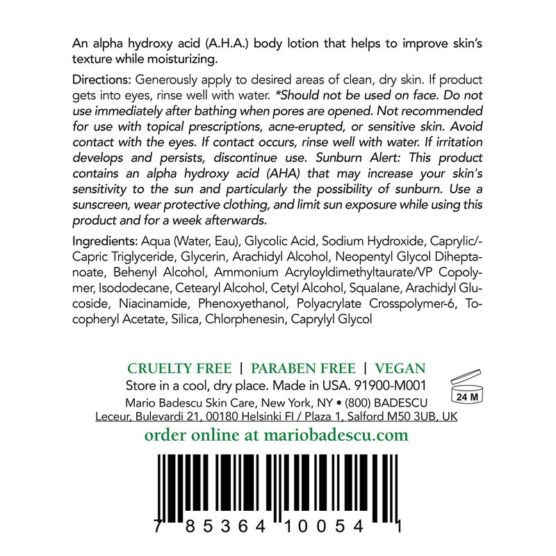 Mario Badescu AHA Body Lotion With Glycolic Acid - Moisturizing & Gentle Exfoliating Body Lotion for Softer, Youthful-looking Skin - Lightweight, Non-greasy Formula, 6 Fl Oz