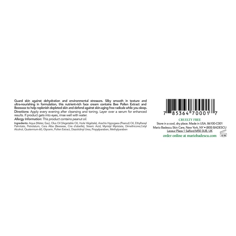 Mario Badescu Bee Pollen Night Cream for Women Anti Aging Overnight Face Cream Formulated with Smoothing Beeswax and Peanut Oil, Ideal for Combination, Dry or Sensitive Skin, 1 Oz