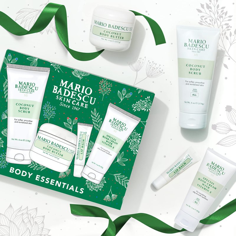 Mario Badescu Best of Body Essentials 4 Piece Kit, Skincare Gift Set Includes Lip Balm, Coconut Body Scrub, Coconut Body Butter & Special Hand Cream With Vitamin E