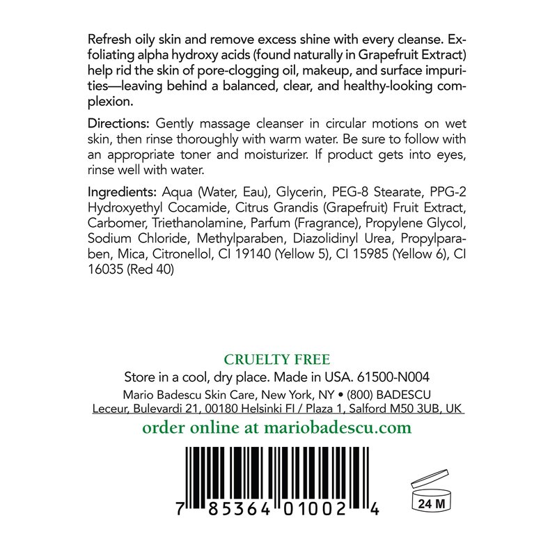 Mario Badescu Botanical Facial Gel Cleanser - Lightweight, Oil-Free Face Wash for Women and Men - Face Cleanser Infused with Refreshing AHA Grapefruit Extracts, 16 Fl Oz