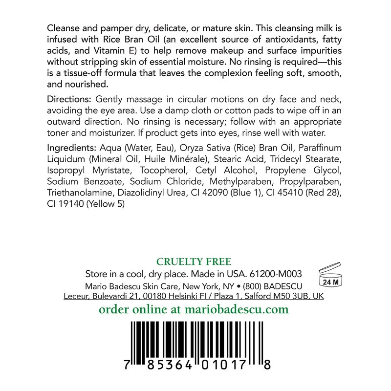 Mario Badescu Cleansing Milk with Carnation, Rice Oil & Vitamin E - No Rinse Liquid Makeup Remover Cleanser with Milky Formula For Skin Care and Gentle Cleansing Experience, 6 Fl Oz