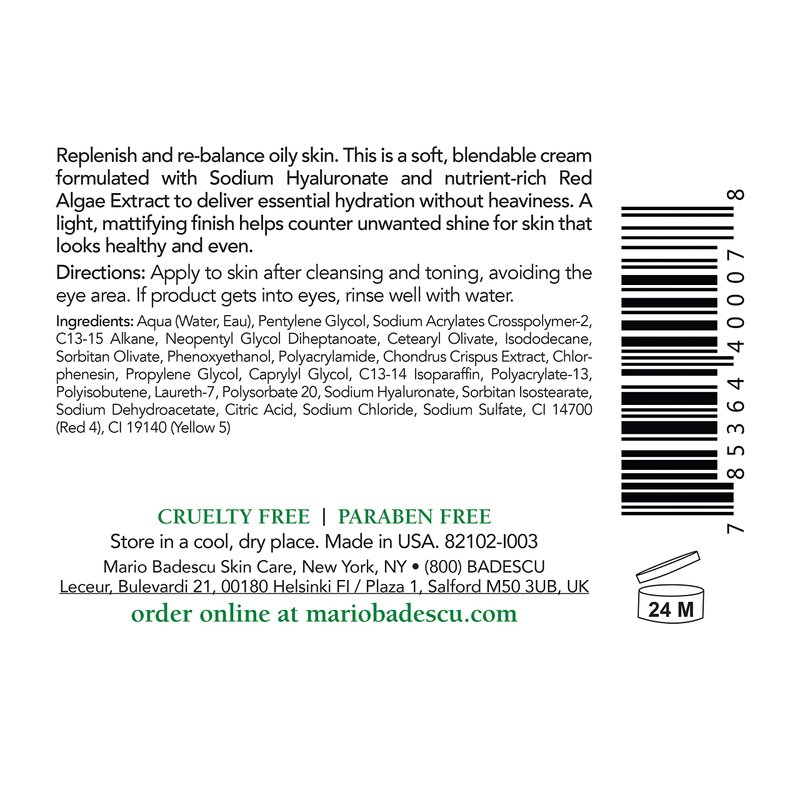 - Soothing botanicals and healing seaweed extract make Mario Bade cu's oil-free